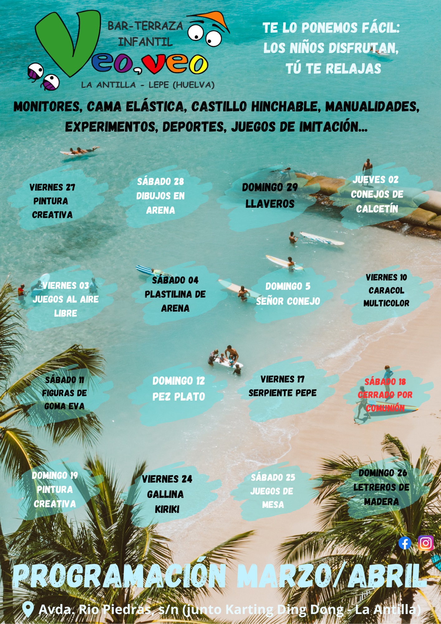 Título: CAFE-TERRAZA VEO VEO. ACTIVIDADES INFANTILESImagen principal: Fecha: Jueves, Abril 2, 2026 - 16:30 to Domingo, Abril 5, 2026 - 23:00Categoría evento: Ocio y deportes