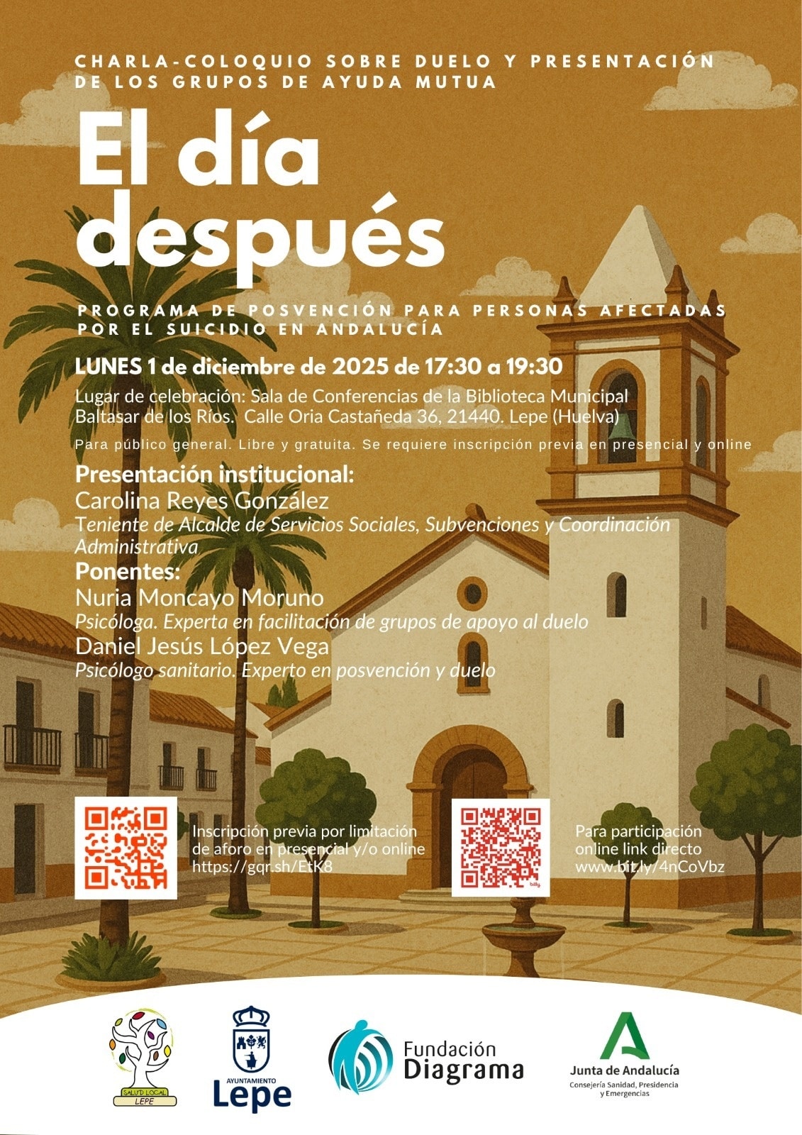 Charla-coloquio sobre el duelo y presentación de grupos de ayuda mutua. Programa de poscención para personas agectadas por el suicidio en Andalucía.