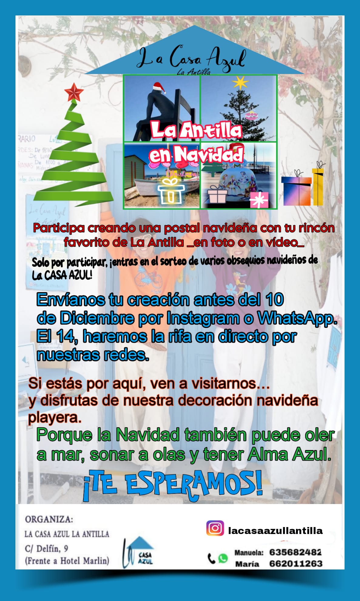 Título: Concurso "Postales navideñas de La Antilla"Imagen principal: Fecha: Lunes, Noviembre 3, 2025 (All day) to Miércoles, Diciembre 10, 2025 (All day)Categoría evento: Ocio y deportes