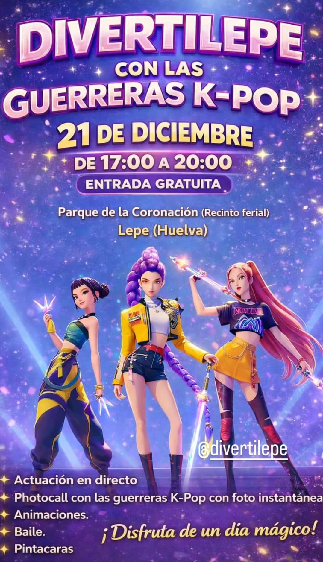 Título: DivertiLepe con las K-PopImagen principal: Fecha: Domingo, Diciembre 21, 2025 - 17:00 to 20:00Categoría evento: Ocio y deportes