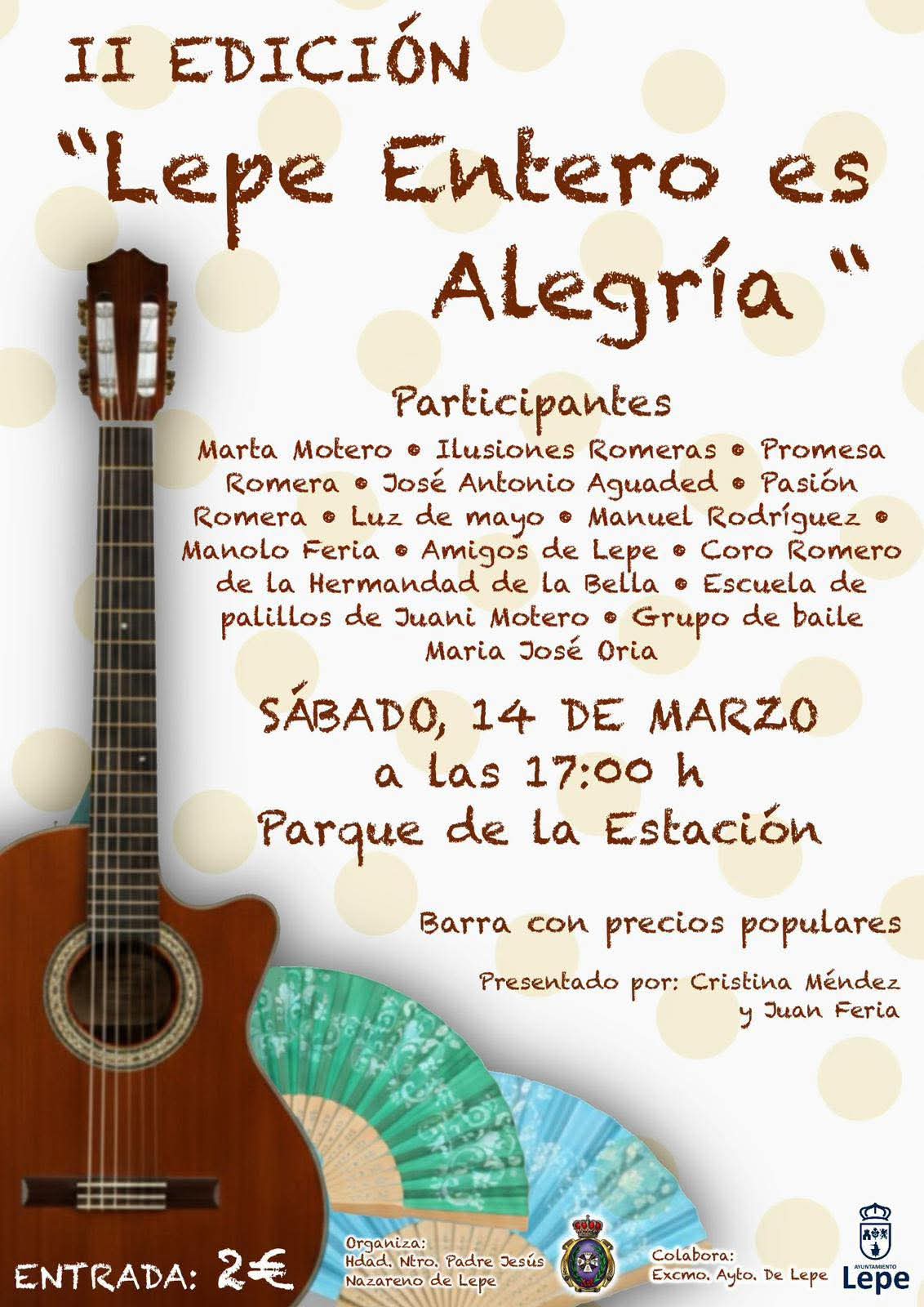Título: "Lepe entero es alegríaImagen principal: Fecha: Sábado, Marzo 14, 2026 - 17:00Categoría evento: Fiestas y eventos