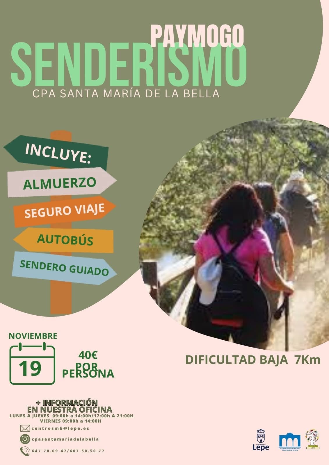 Título: Senderismo Paymogo con el CPA Santa María de la BellaImagen principal: Fecha: Miércoles, Noviembre 19, 2025 (All day)Categoría evento: Ocio y deportes