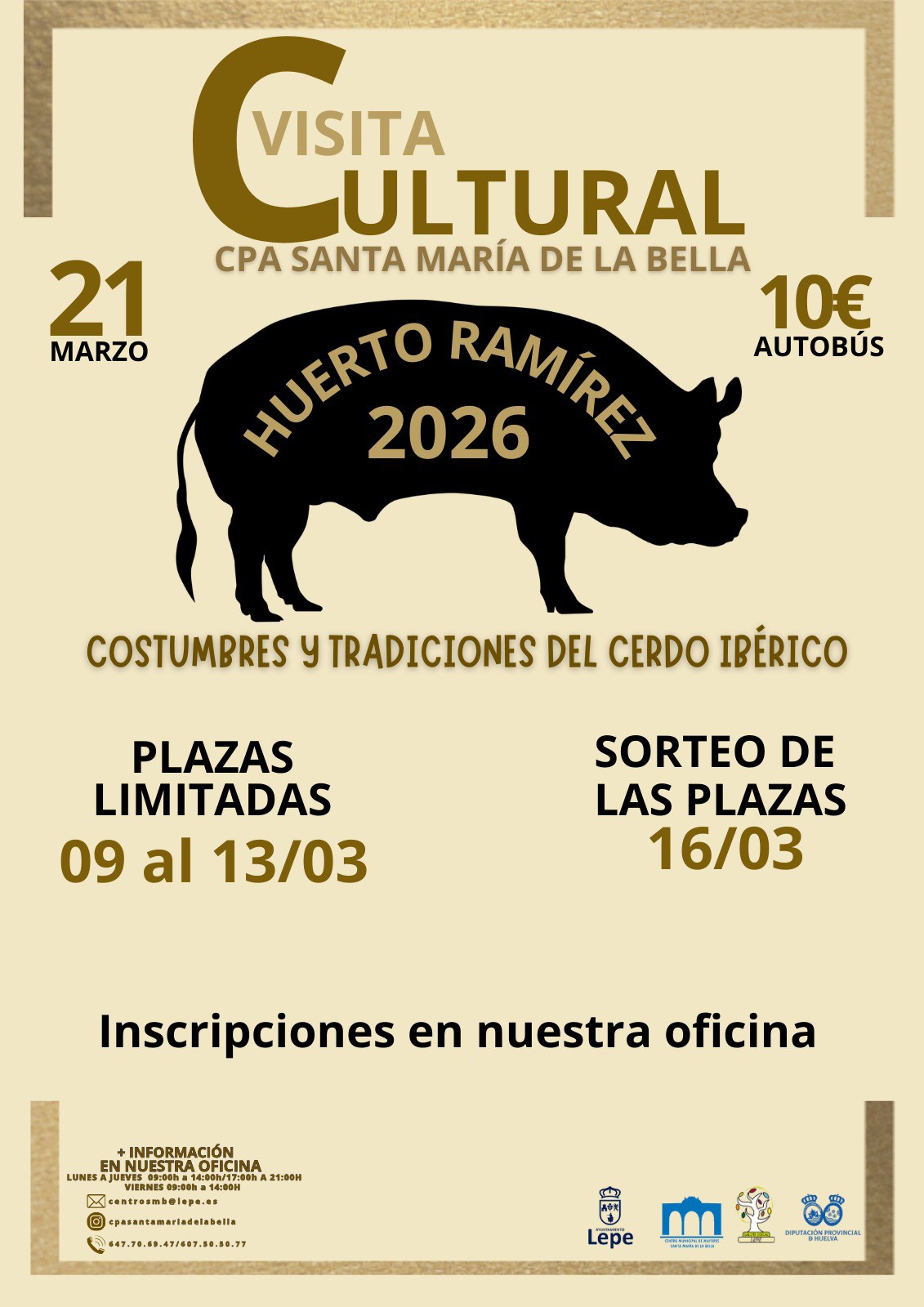 Título: VISITA CULTURAL A HUERTO RAMÍREZ Imagen principal: Fecha: Sábado, Marzo 21, 2026 (All day)Categoría evento: Cultura